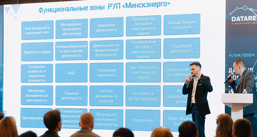 Опытом построения интеграционного контура на базе решения DATAREON в компании «Минскэнерго» поделились заместитель директора по развитию «Электронная экономика» Алексей Войленко и начальник отдела автоматизированных систем управления РУП «Минскэнерго» Александр Мелех.